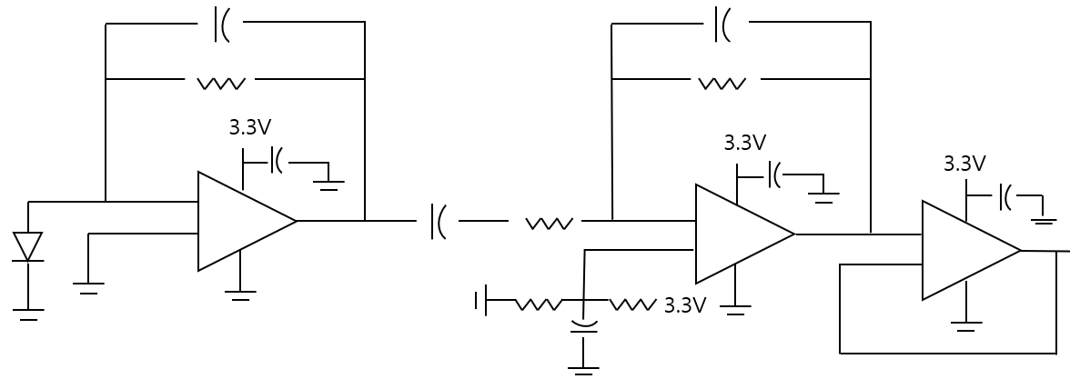 SFH7070에서 얻어진 Raw Data는 전원 노이즈 등 다양한 대역대의 노이즈가 혼합되어 원하는 PPG 신호만을 확인할 수 없다. 따라서 그림 4와 같이 OP Amp로 구성된 4차 필터를 설계하여 원하는 대역대의 신호만을 검출하였다.