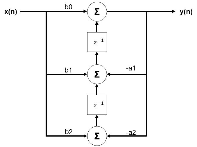 Fig. 6. Biquad Direct Form 2 Transposed Block Diagram