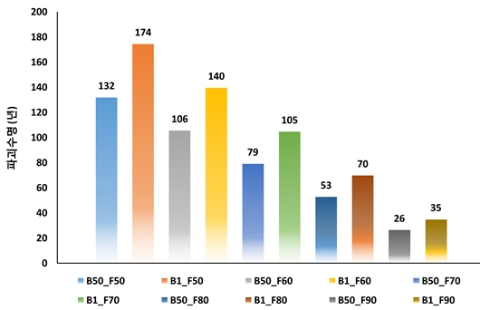 판단기준과 고장률이 높을수록 파괴수명은 짧아짐을 확인하였다.