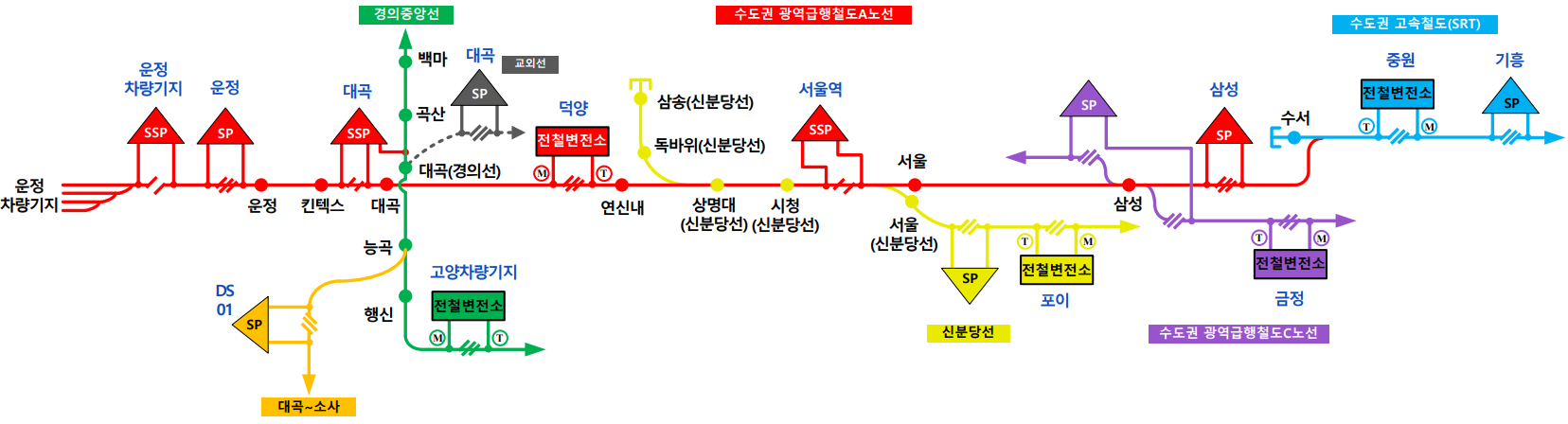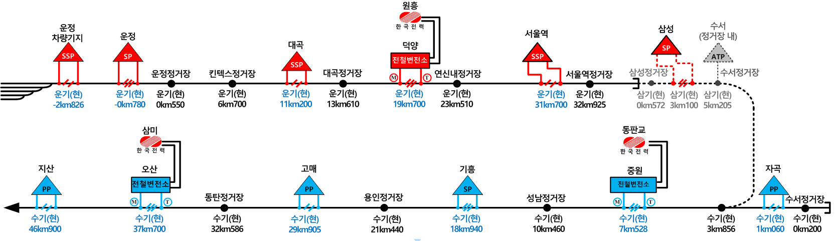 Sectioning Post, SSP) 3개소로 구성되어 있다. SRT노선은 SS 2개소, SP 1개소, 병렬급전소(Parallel Post, PP)