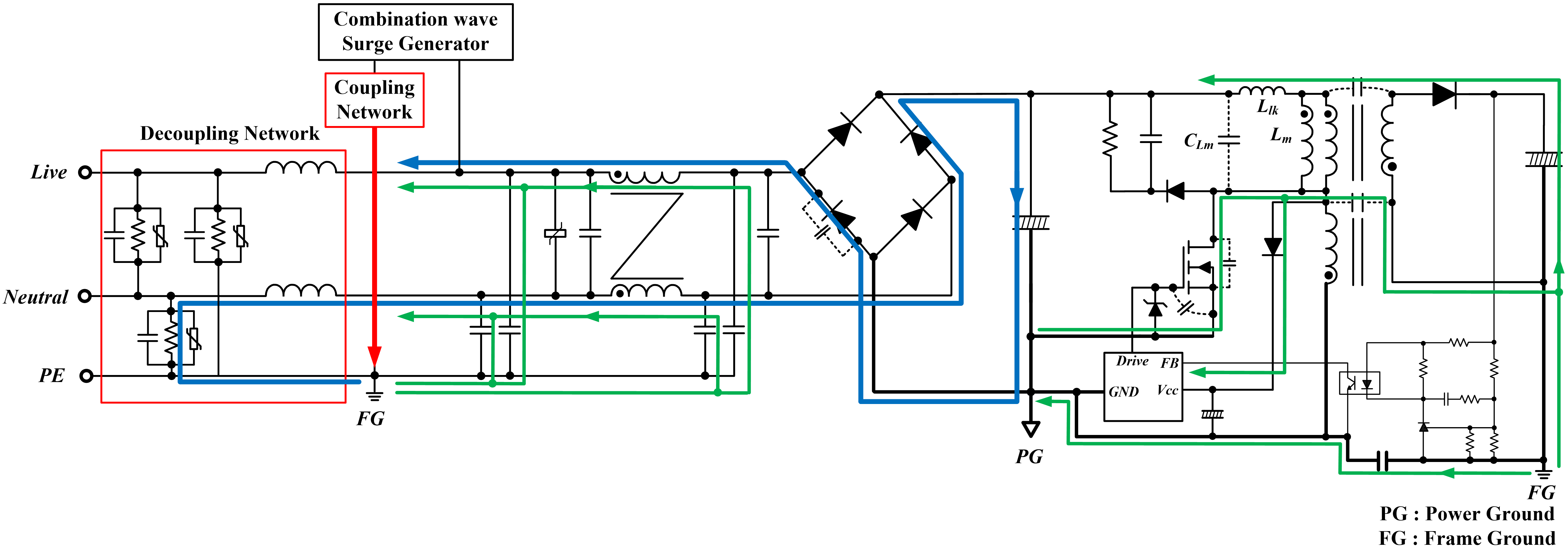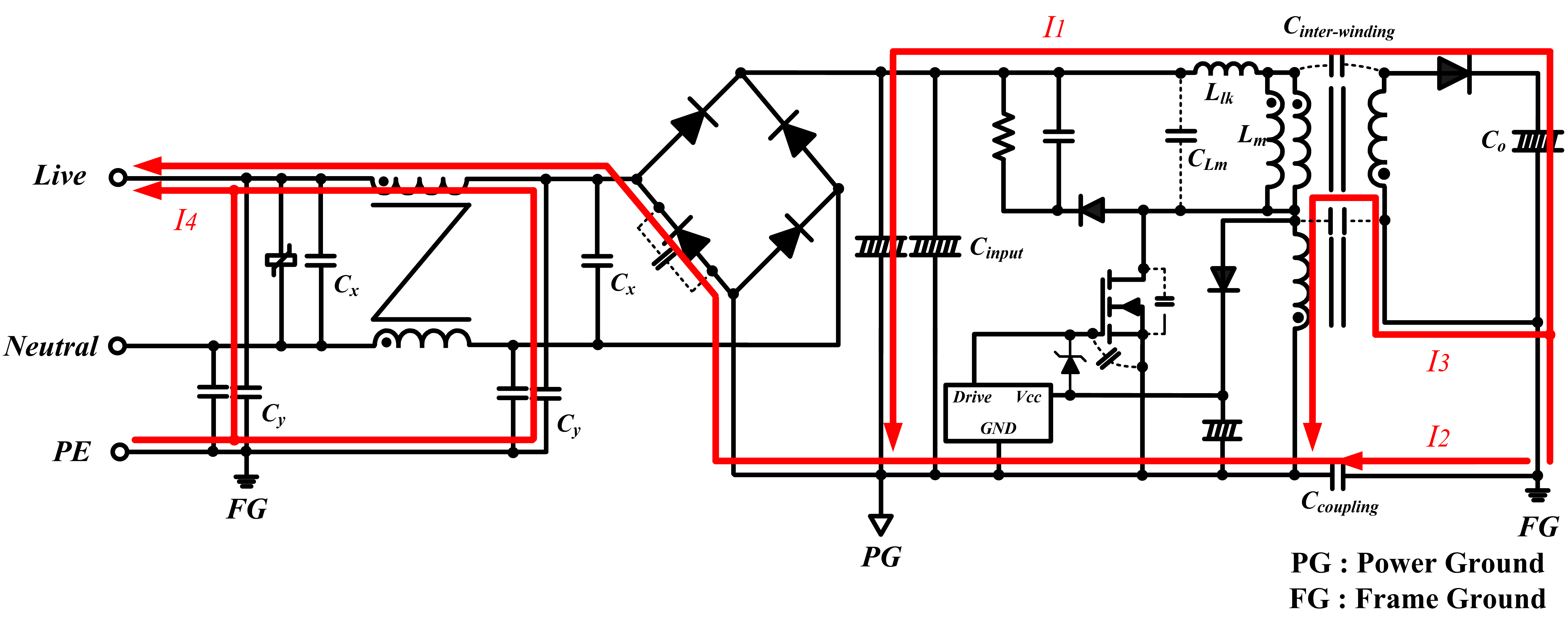 ์ ๋ฐฉ์ ์ ํตํ ์๋์ง ์๋ชจ๋ก ํ๋ก๋ฅผ ๋ณดํธํ๋ค. ๊ทธ๋ฌ๋ ๊ธฐ์กด์ ๋ฐฉ๋ฒ์ ์๋ก ์์ ๊ธฐ์ ํ๋ฐ์ ๊ฐ์ด Y-capacitor์ ๋ํ ๋๋ขฐ ์์ง ๋ณดํธ ๋์ฑ