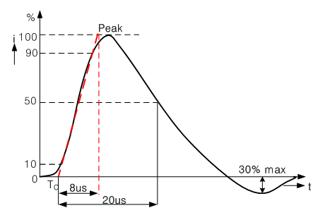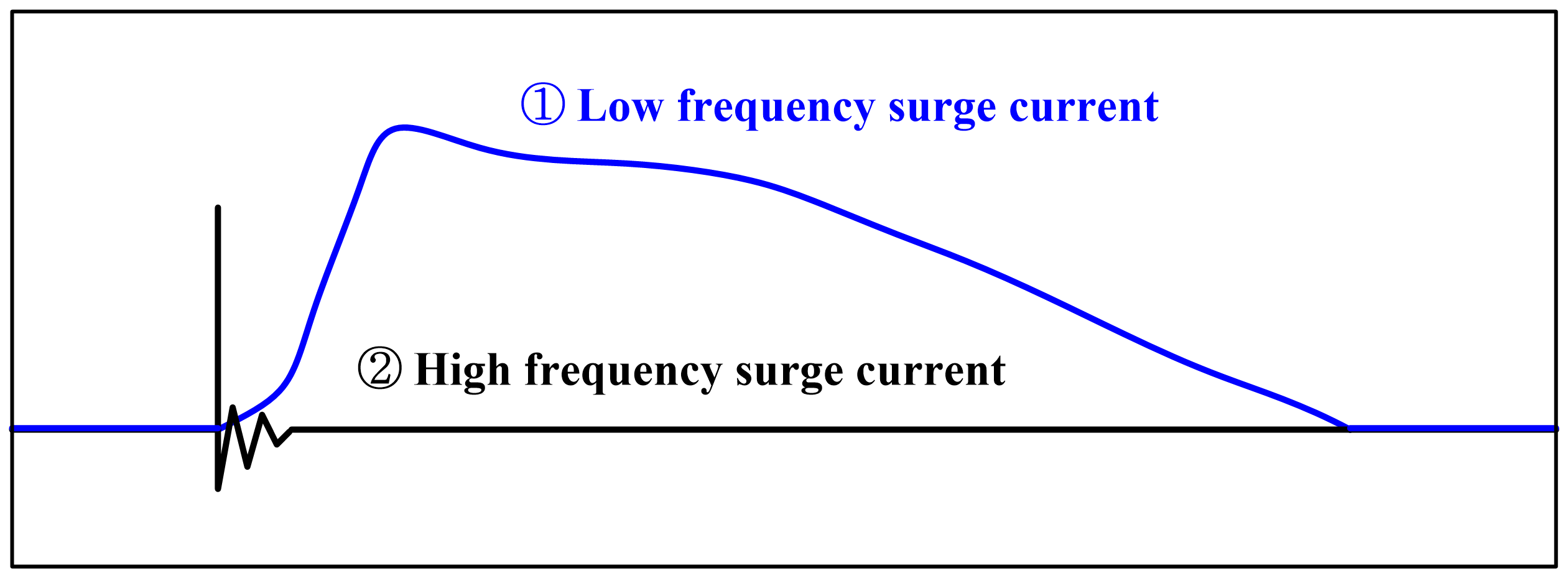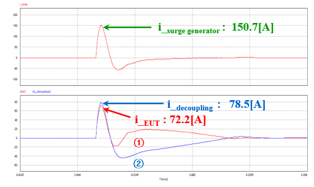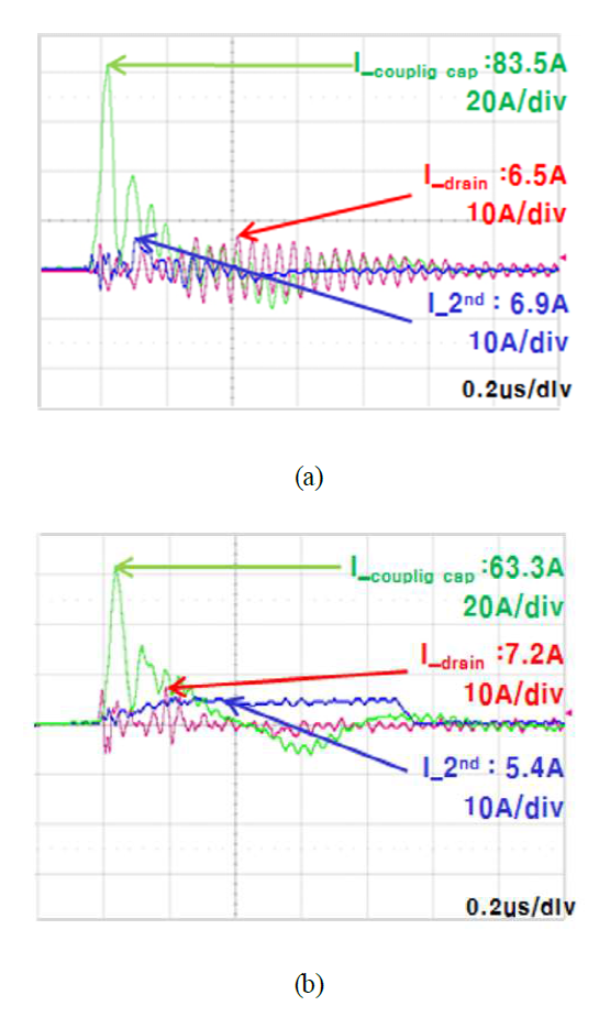 Fig. 26. Key surge current waveforms when the lightning surge is applied; (a) conventional