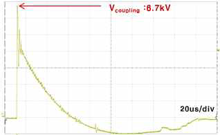 ๊ทธ๋ฆผ 25์์ ๋ํ๋ ๋ฐ์ ๊ฐ์ด ๊ธฐ์กด์ spark-gap์ด ์คํจํ ์ฃผ์์ธ์ ์์์ ํ์(coupling capacitor, Y-capacitor) ๋ฐ ๊ทน์ฌํ