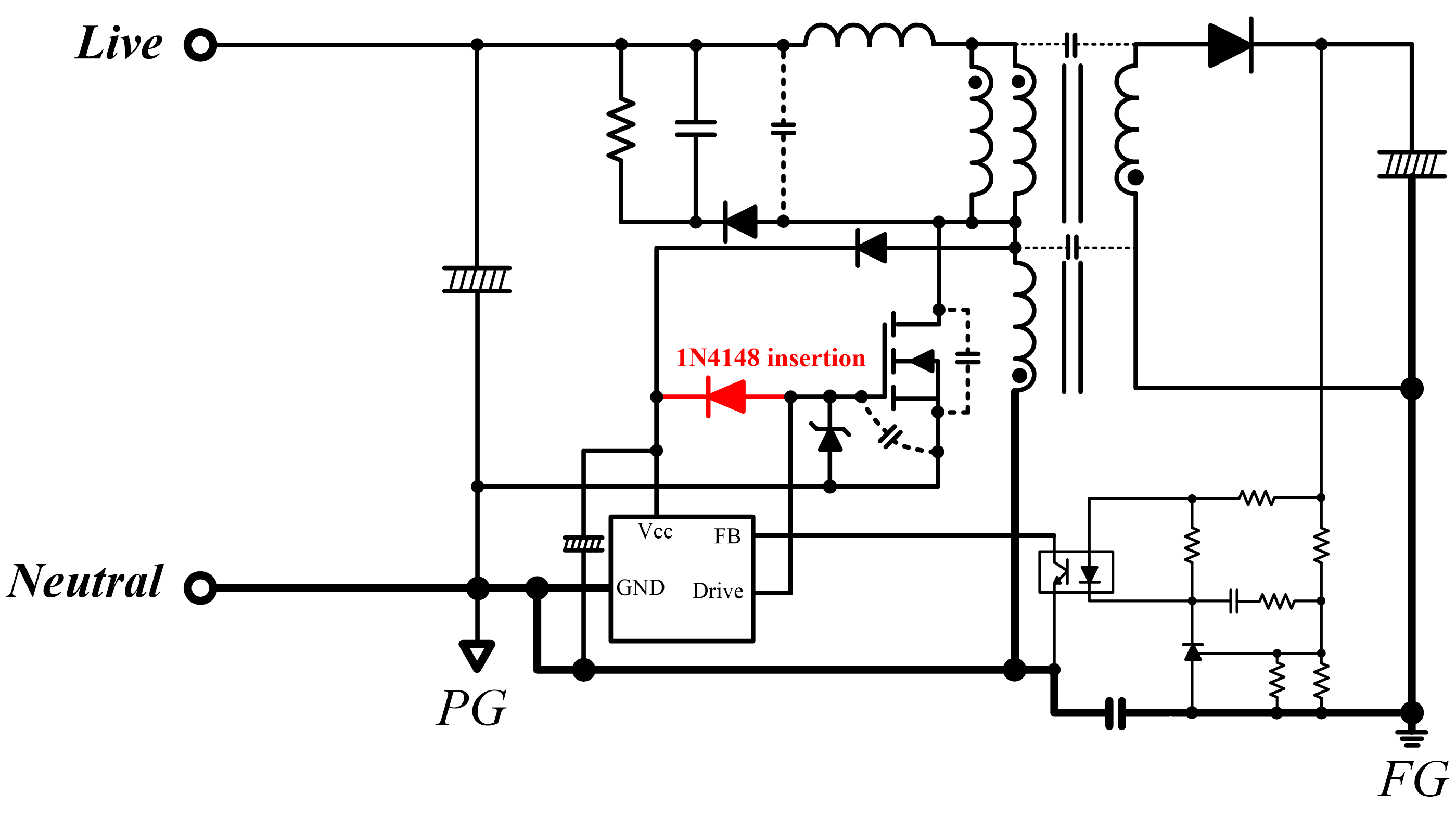 fuse, IC, MOSFET, coupling capacitor, Y-capacitor