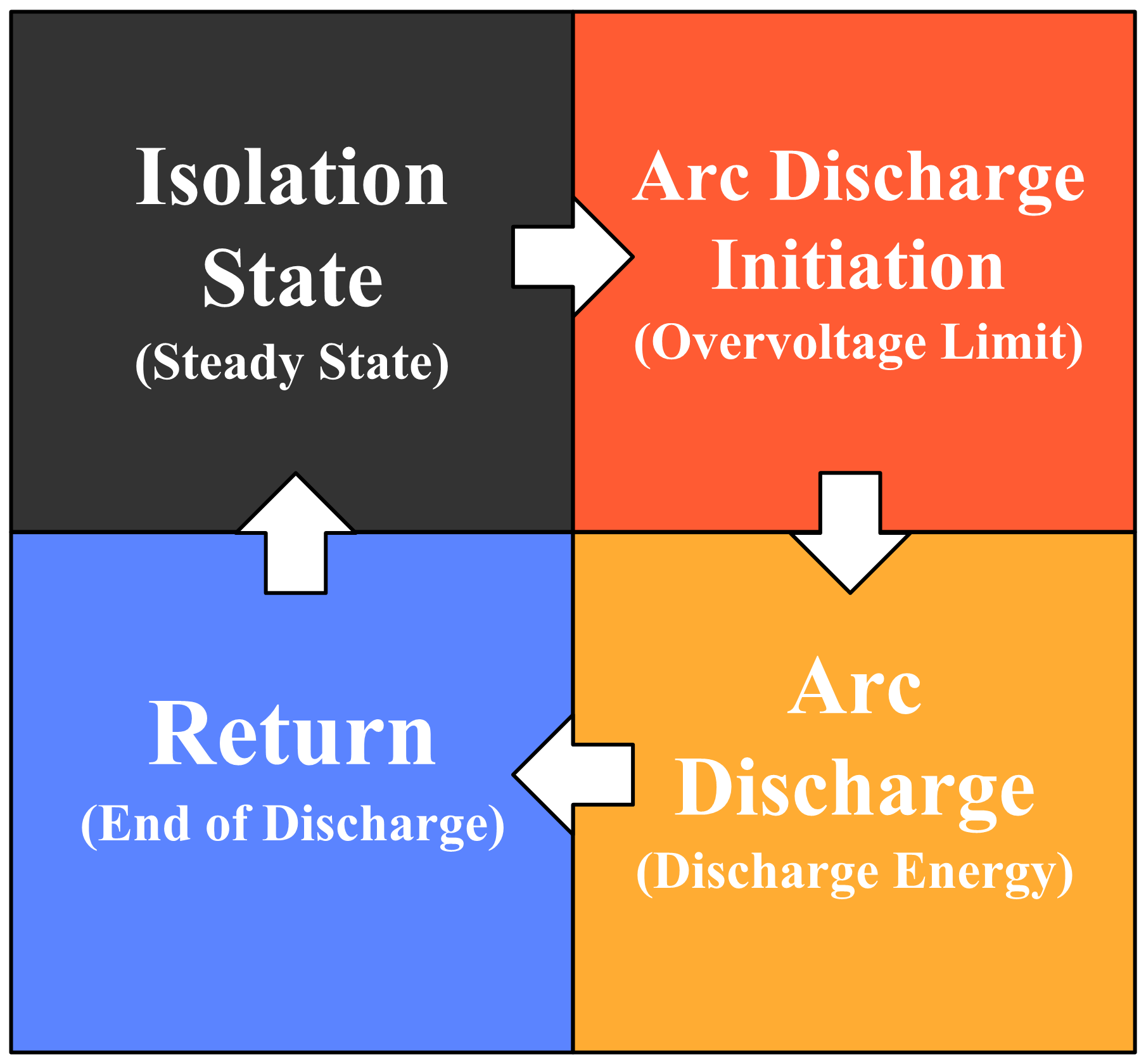 ๋ฑ์ ๋ฐฉ์ ์๋์ง๋ก ๋ณํํ๊ฒ ๋๋ฉฐ spark-gap ์๋จ์ ๊ณผ์ ์์ ์ํ ์ํฌ๋ฐฉ์ ์ด ์๋ฃํ๊ฒ ๋๋ฉด ๋ค์ ์ ์ฐ์ํ์ ์ ์์ํ๋ก ๋ณต๊ทํ๋ค. ์ด๋ฌํ spark-gap์