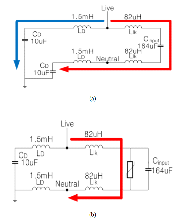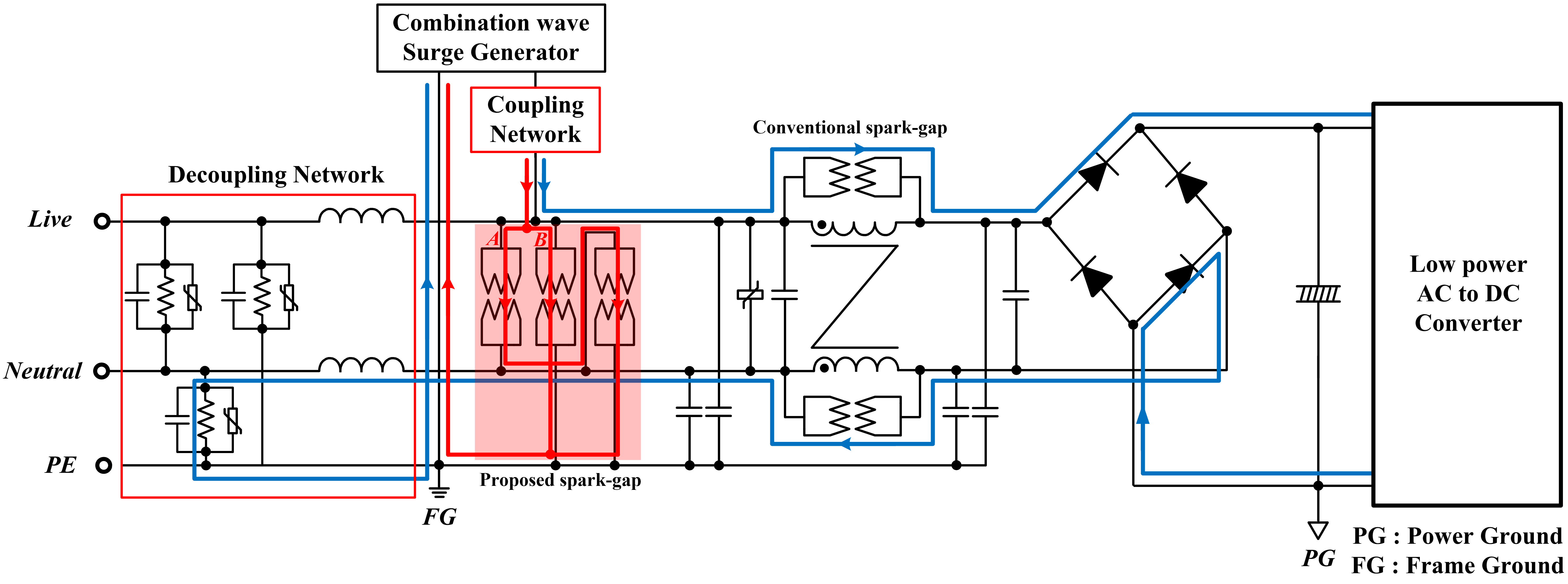 Fig. 22. Surge current paths of conventional and proposed spark-gap