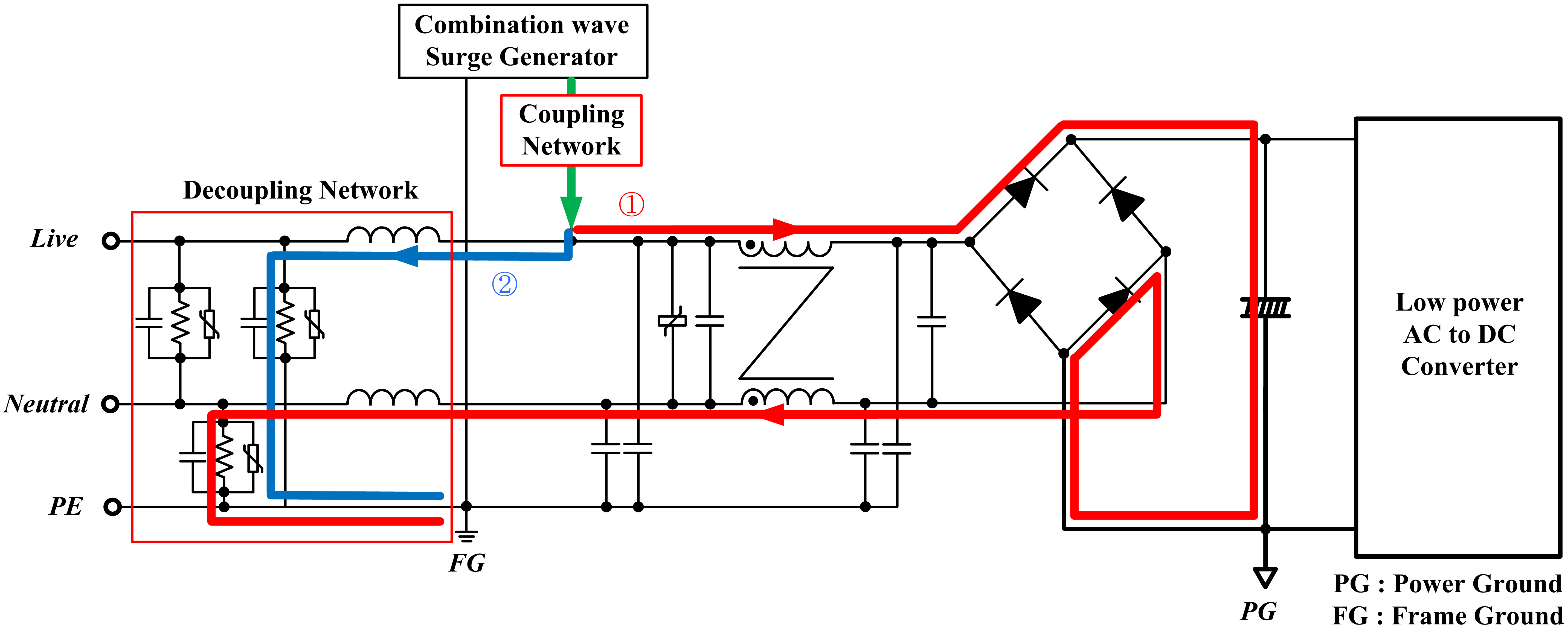 ธ์ด์ฆ ํํฐ ์๋จ์ ์ฅ์ฐฉํ์์ ๊ฒฝ์ฐ, ๋๋ขฐ ์์ง ์ 1์ฐจ์ ์ธ ์ํฌ ๋ฐฉ์ ์๋์ง ์ ๊ฐ์ ํตํด ์ ์ ๋ ฅ AC/DC์ปจ๋ฒํฐ์ ์ ์์ฅ์น ๋ณดํธ์ ํจ๊ณผ๊ฐ