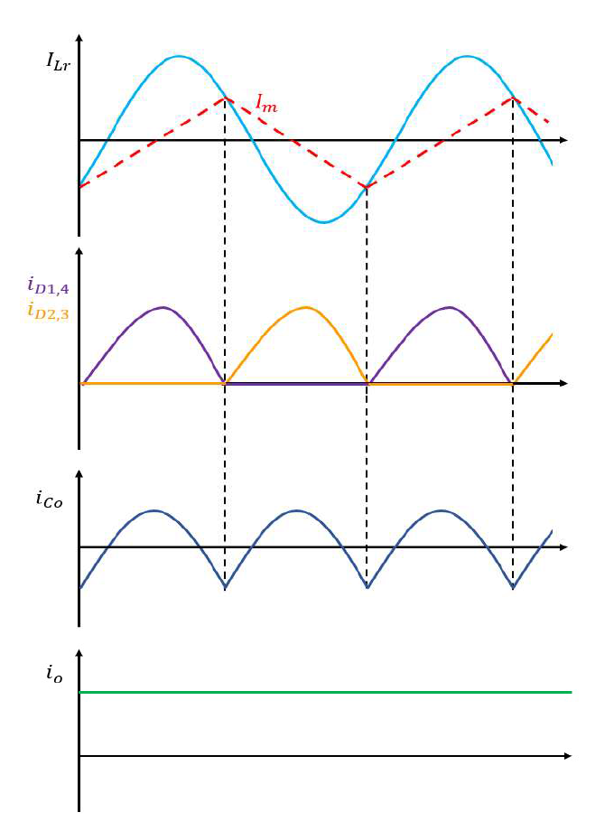 그림 2. FHA 기반 full-bridge LLC 공진형 컨버터 전류 파형