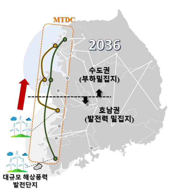 계획을 발표한 바 있다. 해당 설비는 다단자 형태로 연계된 MTDC로, 호남권-충청권-수도권을 연계하는 4GW 2기로 구성되어 총용량은 8GW이다.