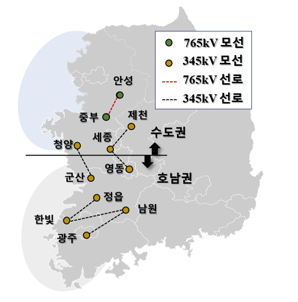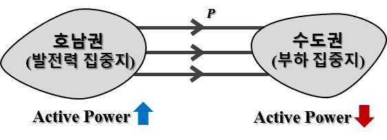 위한 선로 증설 및 HVDC와 같은 AC/DC 계통망 증설 방안이 필요하다[3-5]. 한국의 경우 호남권에 대규모 태양광 및 해상풍력 발전력이 수도권으로 융통되는 북상송전 형태를 띄며, 호남권의 재생에너지 발전력과 수도권 부하가