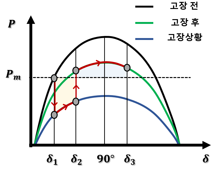 수 있기 때문이다. 아래 수식은 DC 선로 고장 발생 시 P-δ커브를 나타낸 수식이다.