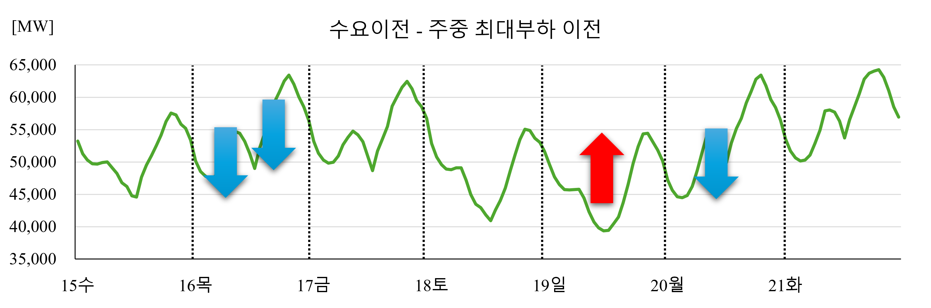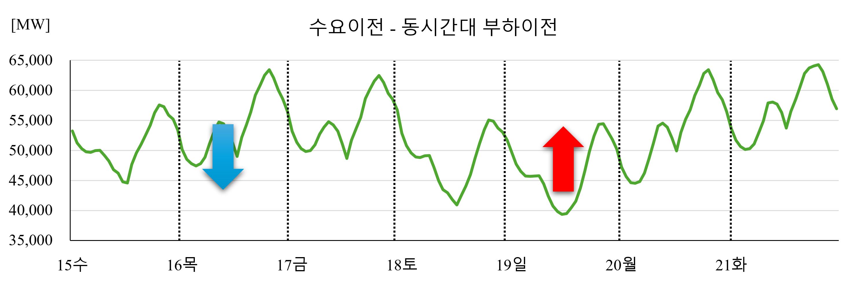 많은 대략 오전 10시~오후 4시에서의 전력수요 감소량이 크게 발생함을 확인할 수 있다.