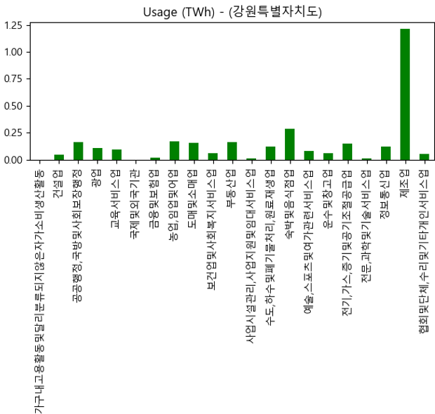 분석 결과, 호남 및 강원 지역 모두 제조업의 전력사용량이 타 산업분류에 비해 높은 것으로 나타났다. 따라서 호남 및 강원 지역의 제조업 업종을 세부적으로