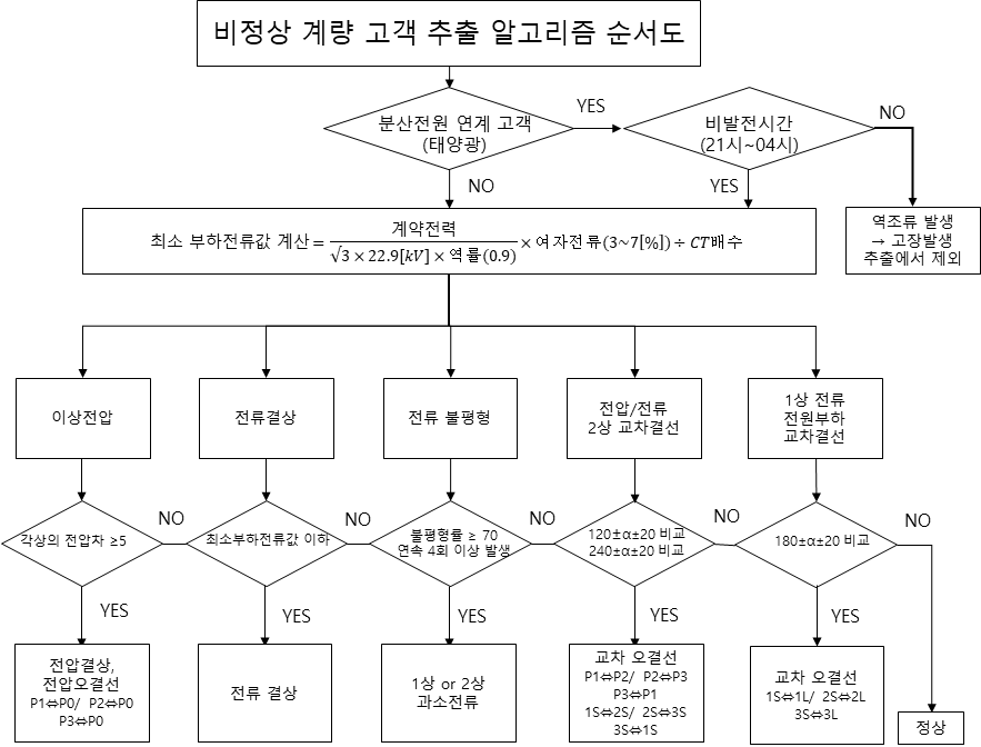 ์ ์๋ ์๊ณ ๋ฆฌ์ฆ์ ๋น๊ต์กฐ๊ฑด ๋ฐ ๊ธฐ์ค๊ฐ์ ํ์ฉํ์ฌ AMI Data ๋ถ์์ผ๋ก ์์ฌ๊ณ ๊ฐ์ ์ถ์ถํ๊ณ , ์ถ์ถ๋ ๊ณ ๊ฐ ์ค๋น์ ํ์ฅ์ง๋จ์ 2์ฐจ๋ก์ ๊ฑธ์ณ ์ํํจ์ผ๋ก์จ