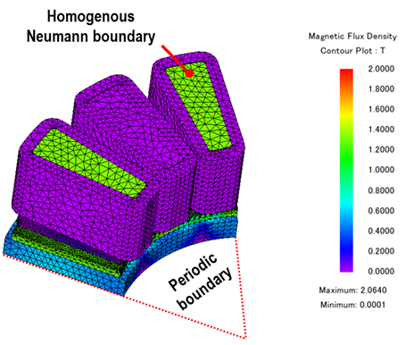 고정자 구조와 설계제원을 그림 1과 표 1에 각각 나타내었다. 그림 1은 주기경계조건과 대칭경계조건을 고려한 형상이며, 표 1에 작성된 설계 변수는 고정값이다.