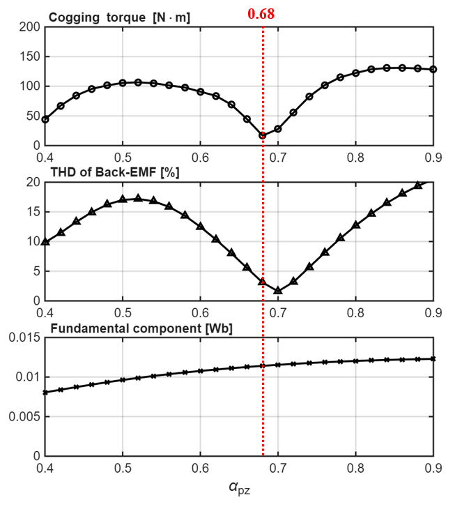 보다 지배적인 인자로 작용한다. 아울러 쇄교 자속의 기본파 성분 또한 $\alpha_{pz}$에 민감한 경향성을 보인다.