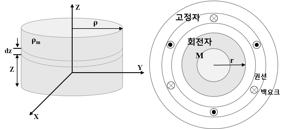 그림 2. 실린더형 회전자와 슬롯리스 모터의 근사 모델