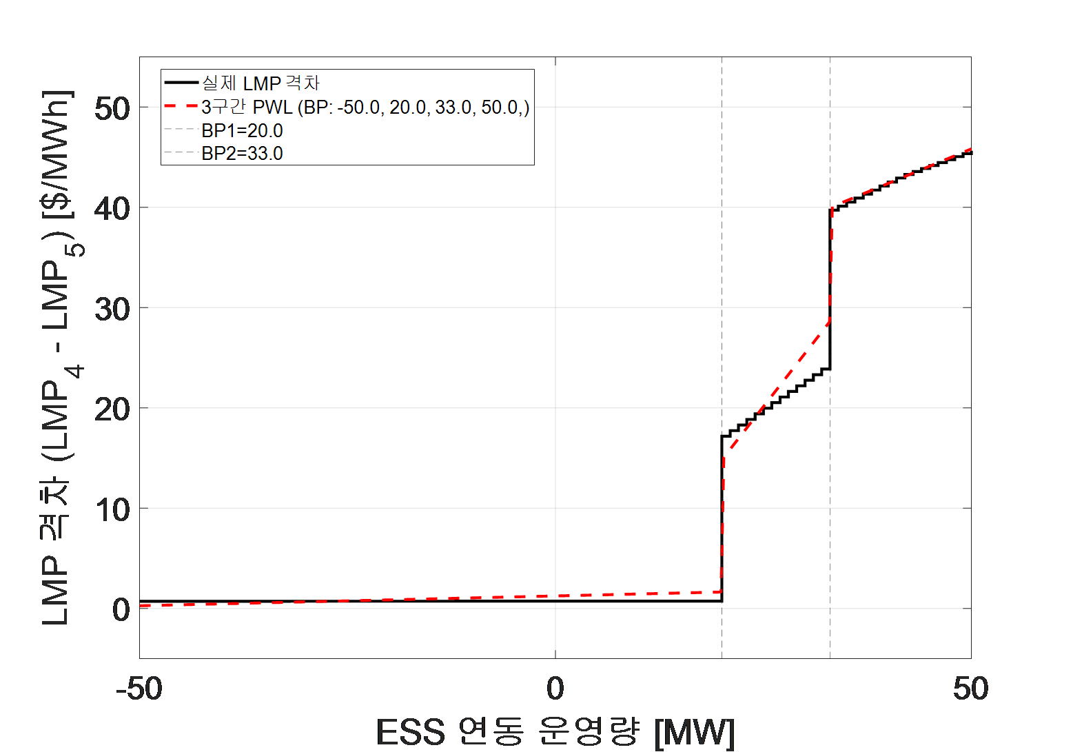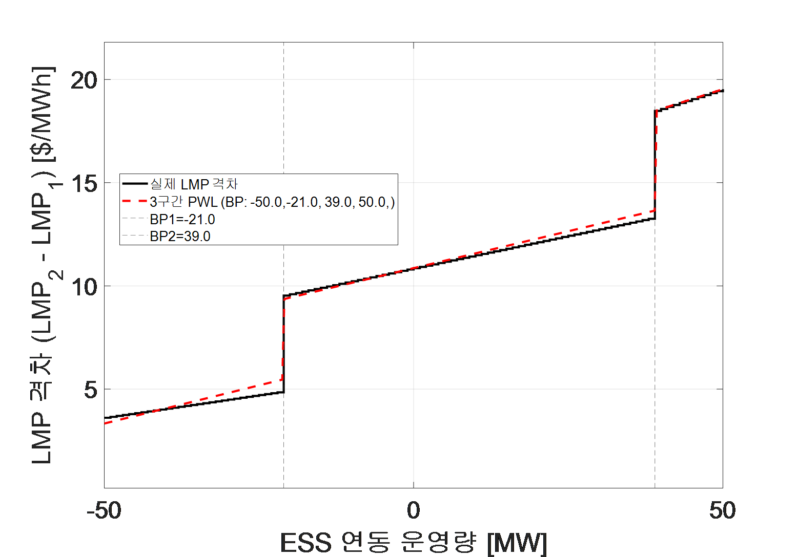 구간별 선형 근사 모델 분할점에서의 LMP 격차