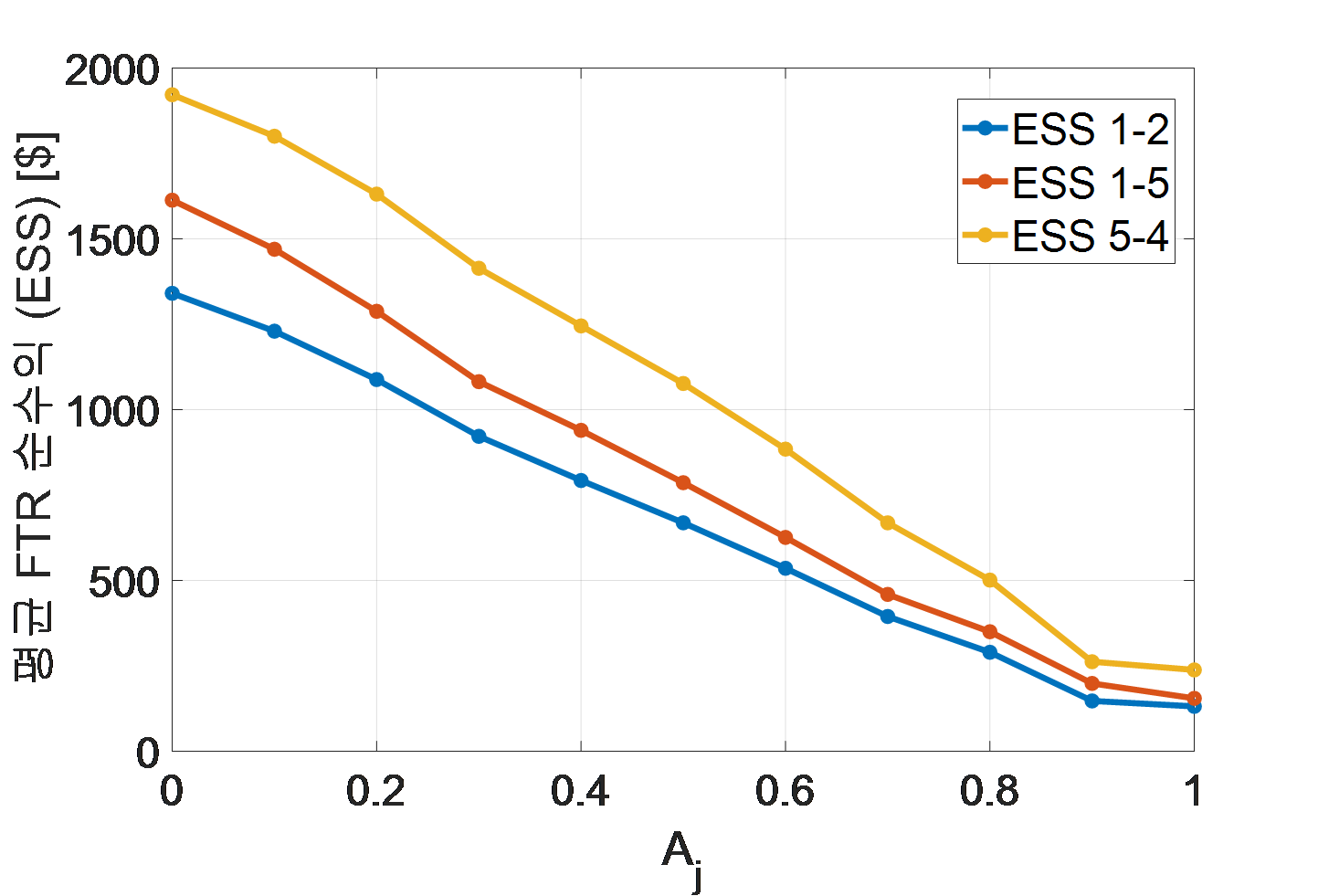 그림 9. $A_{j}$에 따른 ESS FTR 평균 수익