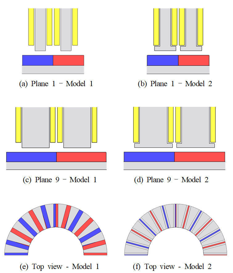 ์ค๊ณ๊ฐ ๊ฐ๋ฅํ๋, ์ด๋ ๋ฐฉ์ฌํ ๋ชจํฐ๋ณด๋ค ๊ตฌ์กฐ์  ๋ณต์ก์ฑ์ด ํจ์ฌ ํฌ๋ค๋ ์๋ฏธ์ด๊ธฐ๋ ํ๋ค. 3D-FEA๋ฅผ ํตํด ๋ถ์์ฌ๋กฏ ๋ฐฐ์น, ์ฌ๋กฏ ์คํ๋ ํฌ๊ธฐยทํ์,