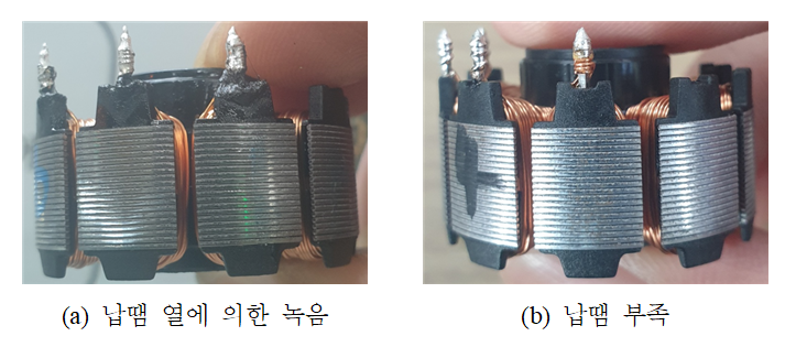 테스트 데이터를 불량으로, 2개의 불량 테스트 데이터를 정상으로 잘못 예측하였다. 그림 8(d)는 소프트 보팅 기법을 적용한 앙상블 모델의 혼동 행렬을 나타낸다. OK 테스트 데이터 중 26개와 NG 테스트 데이터 중 45개를 정확하게 예측하였으며,