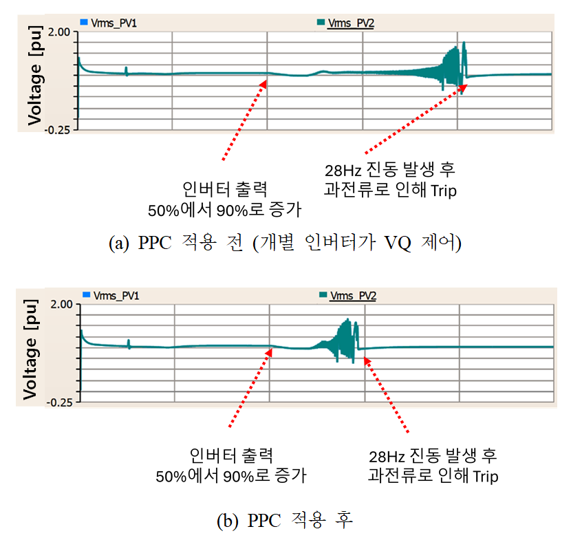 수 있도록 VQ 제어 및 PPC를 적용하되, 인버터 내부 제어 파라미터 튜닝 및 GFM 등 병행하여 사용하는 방안을 마련해야 할 것이다. 마지막으로