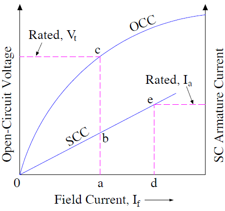 순환에 필요한 계자 전류와 개방회로 정격전압을 생성하는 계자 전류의 비율이며 수식 1과 같이 단락용량 SCC (Short Circuit Capacity)