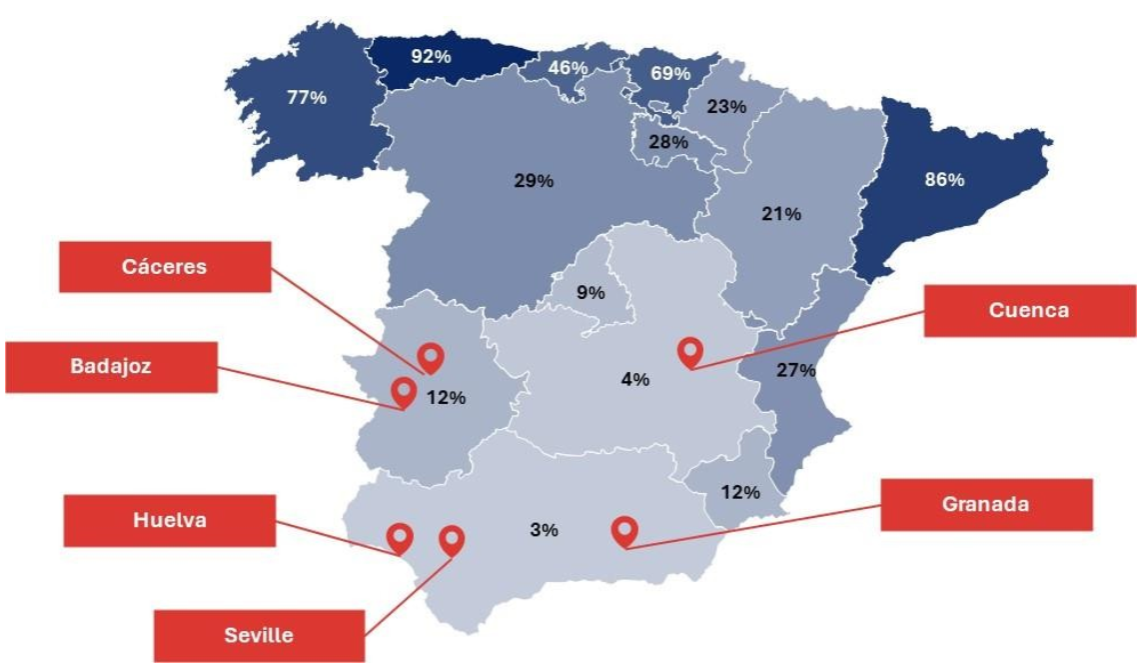 국내는 2023년 기준 총 발전설비 용량이 144,421 MW로 스페인에 비해 다소 높은 편이고, 전라남도의 경우 발전설비 용량 15,363 MW