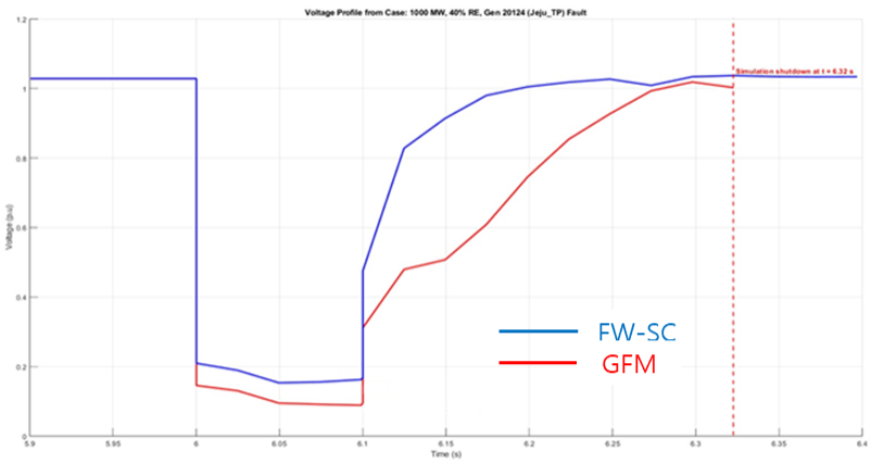 그림 15. 계통고장시 FW-SC, GFM의 무효전력 공급에 따른 전압회복