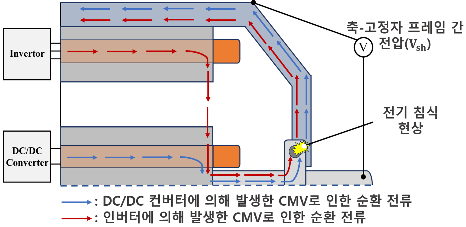 ์์์ฐจ๋ก ์ธํด CMV (common mode voltage)๋ฅผ ๋ฐ์์ํค๋ฉฐ ์ด๋ ๊ฒ ๋ฐ์ํ CMV๊ฐ ๊ธฐ์ ์ปคํจ์ํด์ค์ ํํ๋ก ์ถ์ ์ ์์ ๋ฐ์์์ผ ์ถ