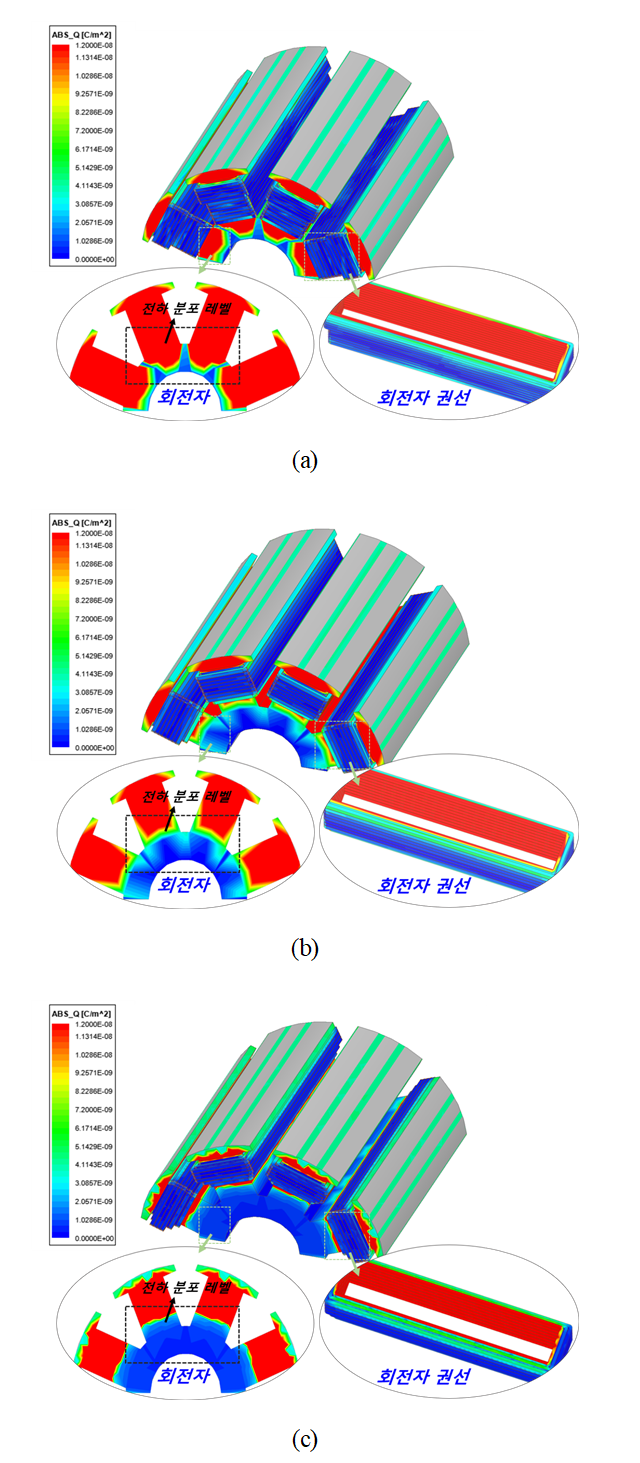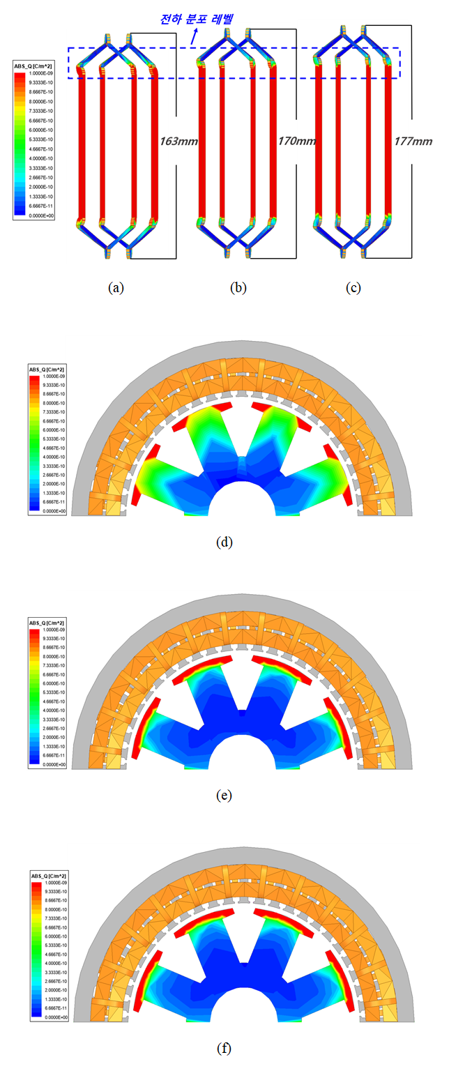 Fig. 8. Charge Distribution of stator winding and rotor according to stator end winding