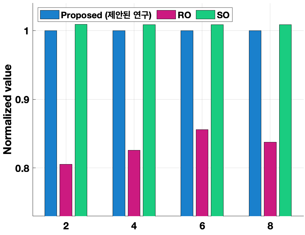 ๊ฒฐ๊ณผ๋ฅผ 1๋ก ์ ๊ทํํ์ฌ 2๊ฐ์ ๊ธฐ์กด์ฐ๊ตฌ๋ค๊ณผ ๋น๊ต๋ถ์ ํ์๋ค. ๋ชจ๋ $t_{p}$ํ๊ฒฝ์์ SO์์์ ์์ต์ฑ์ด ์ ์ผ ๋๊ณ , RO์ ์์ต์ฑ์ด ๋ฎ์ ๊ฒ์