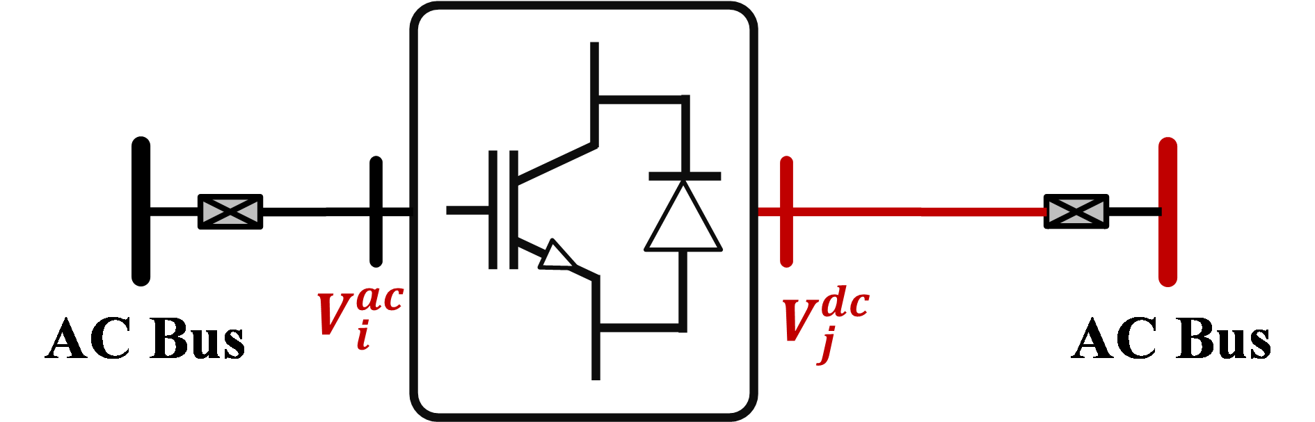 그림 1에서 (b) 구성은 한쪽 버스는 AC이고 MMC 컨버터를 통해 다른 버스를 DC 버스로 구성한 구성이다. 해당 선로는 AC이기 때문에 2.2.2와