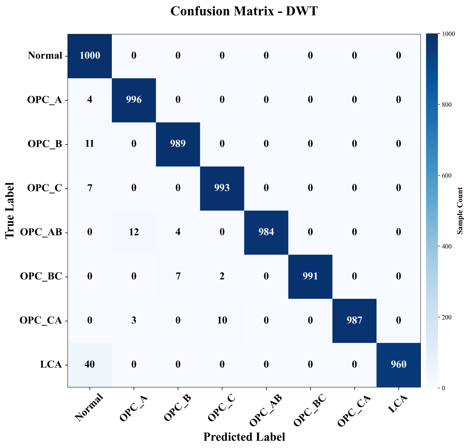 구간의 슬라이딩 창에 고장 특징이 충분히 포함되지 않아 모델이 경계 조건에서 혼동을 일으킬 수 있음을 보여준다. 또한 AB상 오분류의 경우 2단계