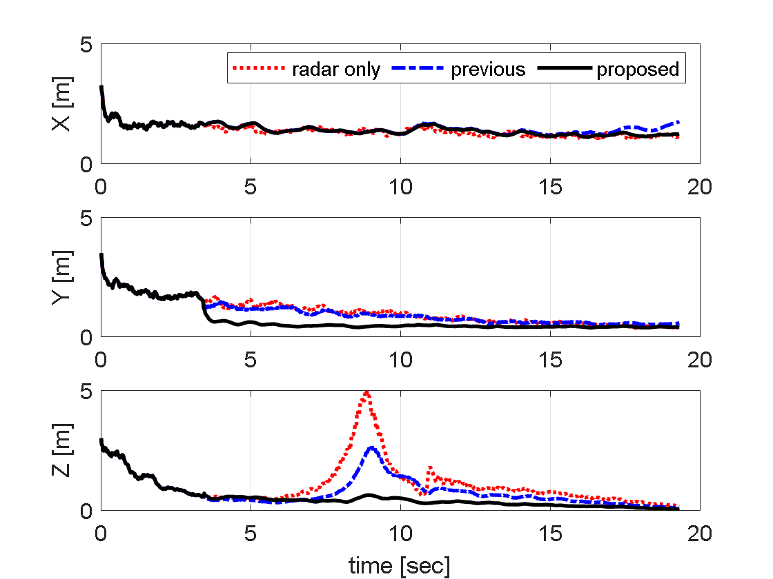 만일 보조센서로부터 매 시점 현재 시점 정보가 지속적으로 제공된다면 다중경로의 영향을 받은 레이더 정보에 의해 추정성능 열화를 효과적으로 억제할 수