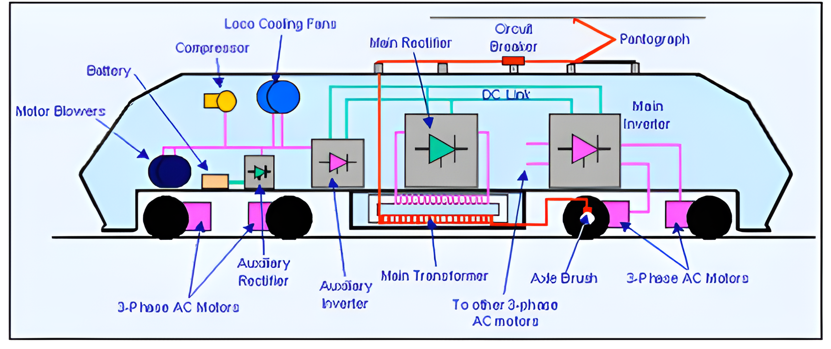 첫째 구동(견인) 계통: 가속·정속·감속 전 구간에서 견인전동기와 전력변환장치(VVVF-IGBT)가 소비하는 에너지로, 노선 구배/곡선, 정차 패턴,