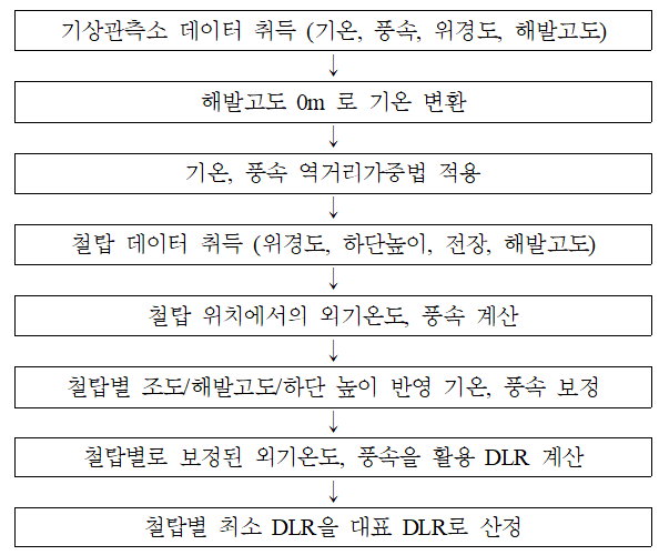 ์ ๋ ฅ ๋ถ์ผ ๊ธฐ์์ ๋ณด๋ ์ฃผ๋ก ํ์๊ด, ํ๋ ฅ ๋ฑ ์ ์ฌ์ ์์ธก์ ํ์ฉ๋๋ฉฐ, ์์น์๋ณด๋ชจ๋ธ์ ํ์ฉํ์ฌ ๊ธฐ์ ์ ๋ณด๋ฅผ ๋ณด์ ํ๋ ์ฐ๊ตฌ๊ฐ ์งํ๋์๋ค [7]. โ์ธ๊ธฐ์จ๋ ์ธก์ ๋ฐฉ์โ DLR ์ฐ๊ตฌ ๊ด๋ จ์ผ๋ก๋ ๊ธฐ์๊ด์ธก์์ ๊ณผ๊ฑฐ ๋๋ ํ๋ฅ ๋ก ์ ๊ธฐ์ ์๋ณด ๋ฐ์ดํฐ๋ฅผ DLR ์ฐ์ ์ ์ ์ฉํ์์ผ๋ฉฐ [8-10], ์ ๋ก ๊ณ ์ฅ ์ ํ์ฉ์ ๋ฅ ๊ธฐ์ค ์ด๊ณผ์จ์ ๋ฐ๋ผ ๋ฐ๋ผ DLR ์ ์ฉ ์ํ์ฑ์ ํ๊ฐํ ์ฌ๋ก๊ฐ ์๋ค [11]. ํ์ง๋ง ๊ด์ธก๋ ๊ธฐ์ ๋ฐ์ดํฐ์ ์ญ๊ฑฐ๋ฆฌ๊ฐ์ค๋ฒ(IDW, Interpolation Distance Weighting), ์ฒ ํ์ด ์์นํ ํด๋ฐ๊ณ ๋ ๋ฐ ์ฒ ํ