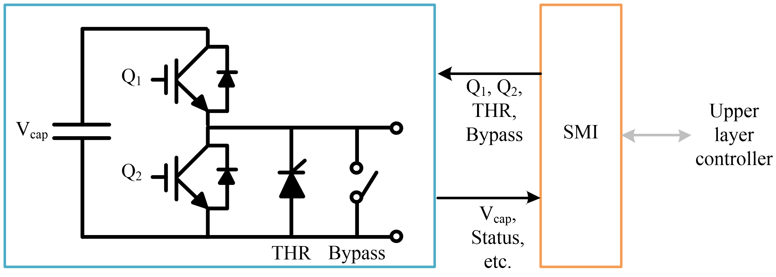 그림 1은 MVDC-MVDC 컨버터스테이션용 SM을 보여준다. SM은 하프브릿지 토폴로지이며, 모듈 보호를 위한 thyristor, by-pass 스위치로