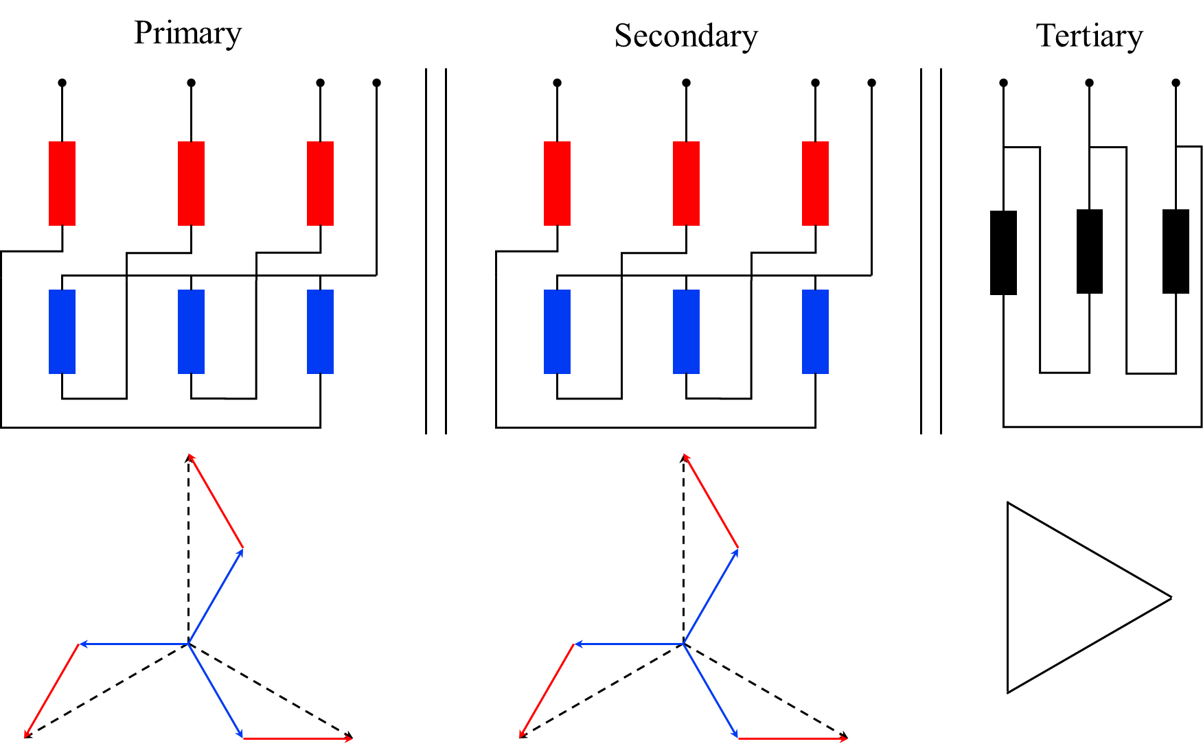 Fig. 3. Wiring configuration of 3phase zig-zag TR