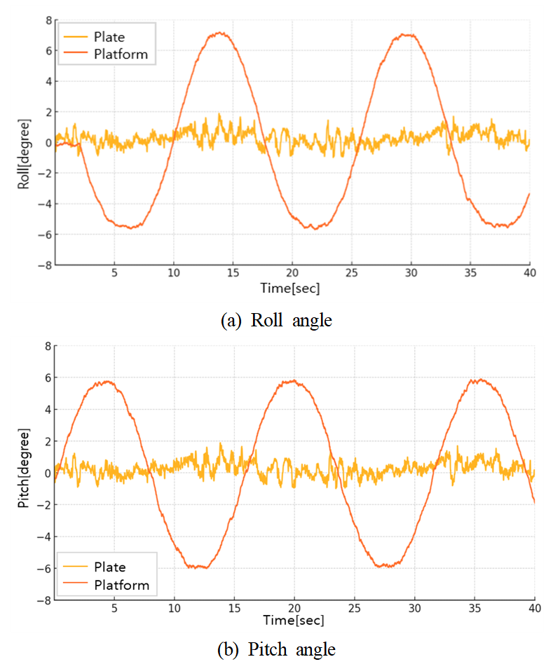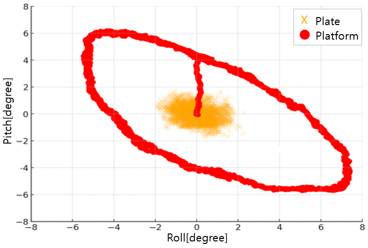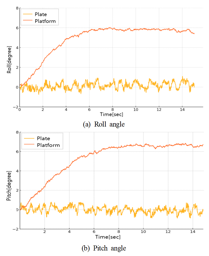 μ₯μΉμ IMU μΌμλ ννν μ§λ©΄μ μλλΌλ λ‘€, νΌμΉ κ°λκ° νμ 0Λλ₯Ό μ μ§ν μ μλ€. λ°λΌμ λͺ¨ν° κ°λ κ°μ λμΌν κ°μΌλ‘ ν΅μΌν μνμμ