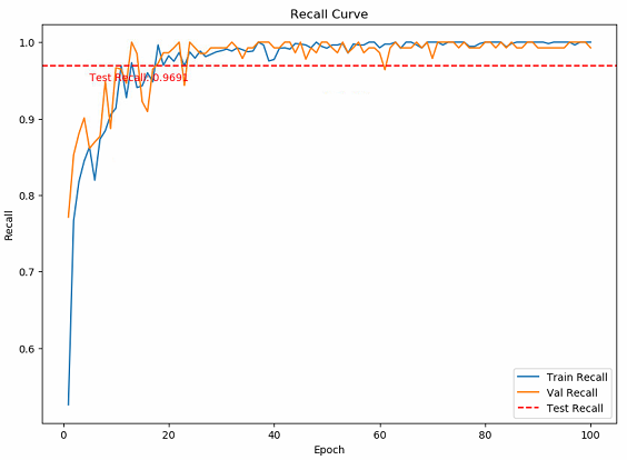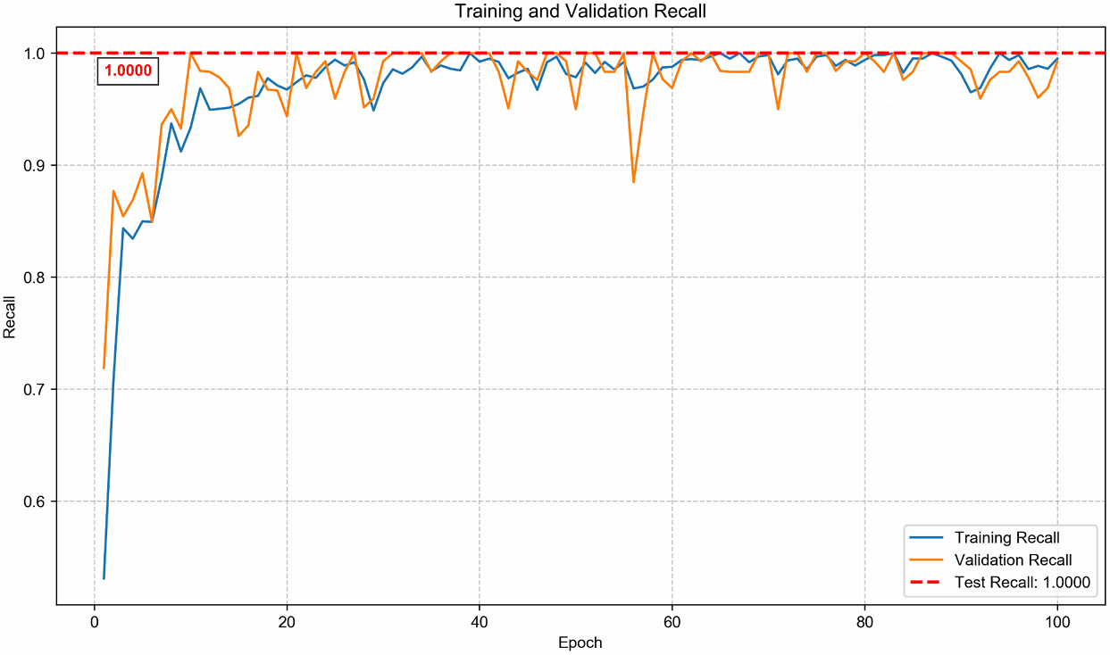 during the training process, and the F1 score quickly reached and maintained a level