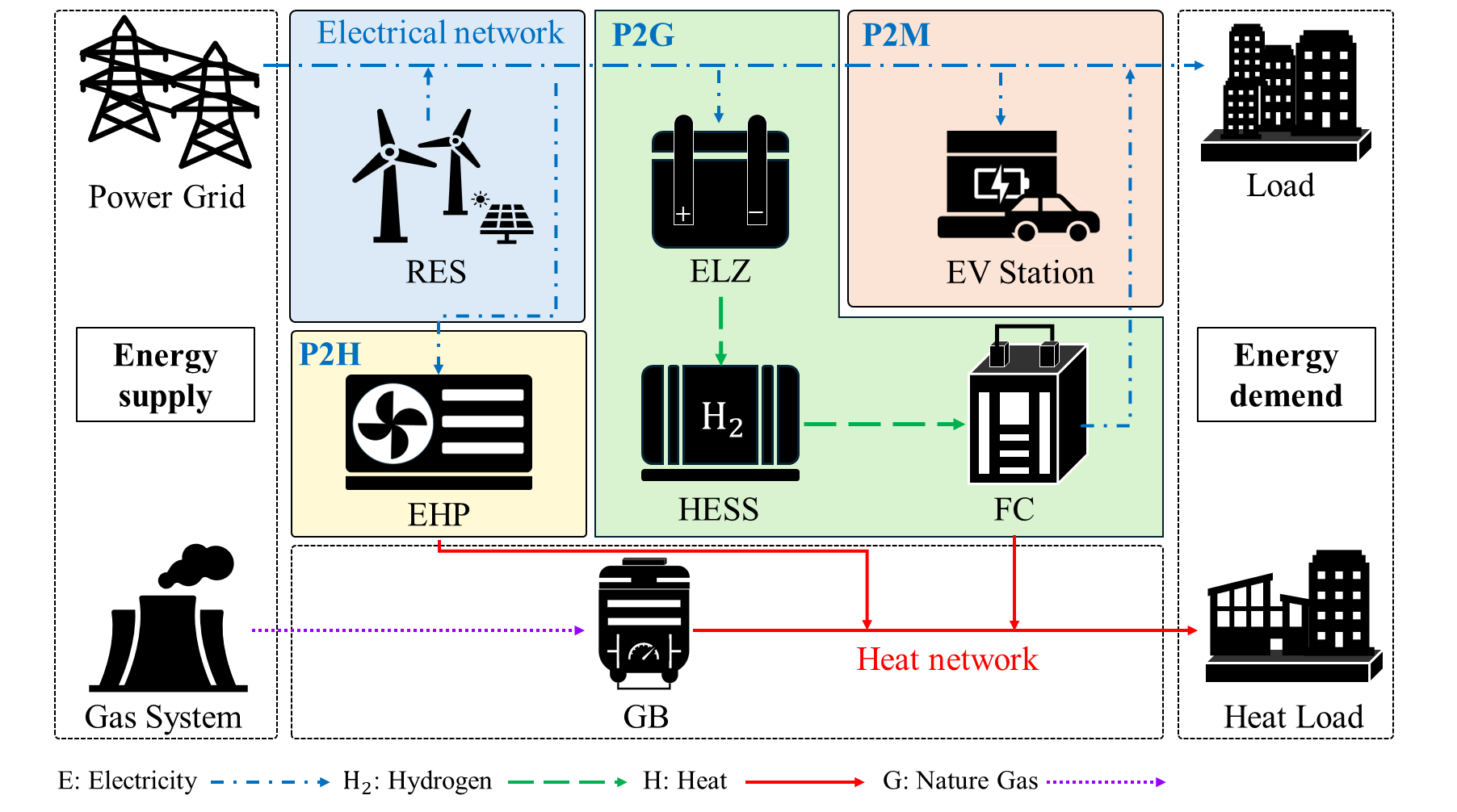 경제적 이익 증대를 위해 P2X 설비를 도입하여 IES을 구축하고 전력뿐만 아니라 열에너지와 수소 에너지까지 공급하는 다중 에너지 공급자(MEP,