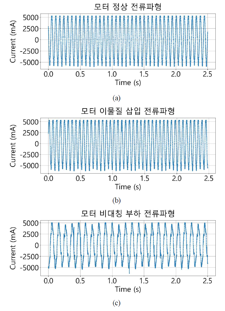 ๊ณ ์ฅ ๋ฐ์ดํฐ ์์ง์ ์๋์ ๊ฐ์ ๋ฐฉ๋ฒ์ผ๋ก ์งํ๋์๋ค. ์ ์ ์ํ์ ๋ชจํฐ ๊ตฌ๋ ๋ฐ์ดํฐ๋ฅผ ๊ธฐ์ค ๋ฐ์ดํฐ๋ก ์์งํ ํ, ๊ทธ๋ฆผ 2 (a)์ ๊ฐ์ด BLDC ๋ชจํฐ์ ๋ฒ ์ด๋ง ๋ด๋ถ์ ์ด๋ฌผ์ง(ํฌ์คํธ์ ์กฐ๊ฐ)์ ์ฝ์